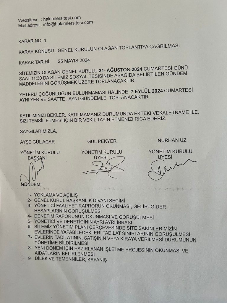 HAKİMLER SİTESİ OLAĞAN GENEL KURUL DAVETİ tarafından Gul Acar | Tem 21, 2024 | Duyurular31 Ağustos 2024 tarihinde yapılacak olan Hakimler Sitesi olağan genel kurul daveti